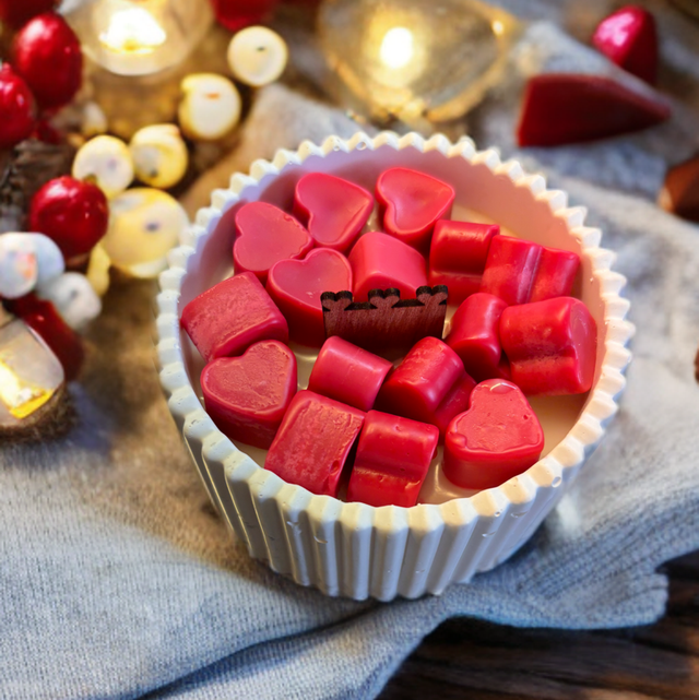 Des petits cœurs gourmands, une teinte rouge passion et une ambiance douce à la lueur des bougies… Cette création est une véritable déclaration d’amour ✨